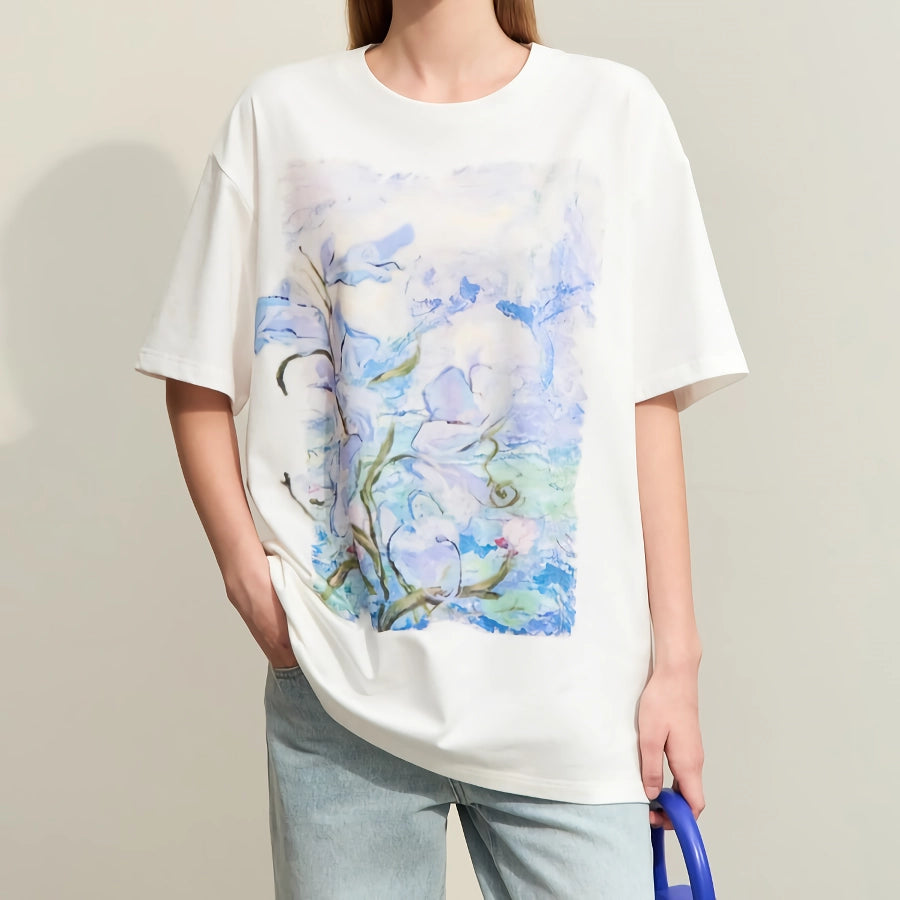 Minimalist Art Print Cotton T-Shirt for Women - Casual Short-Sleeve Top