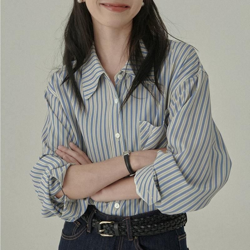 Elegant Spliced Belt Long Sleeve Casual Shirt for Women