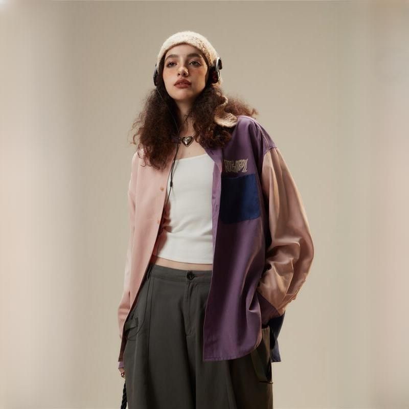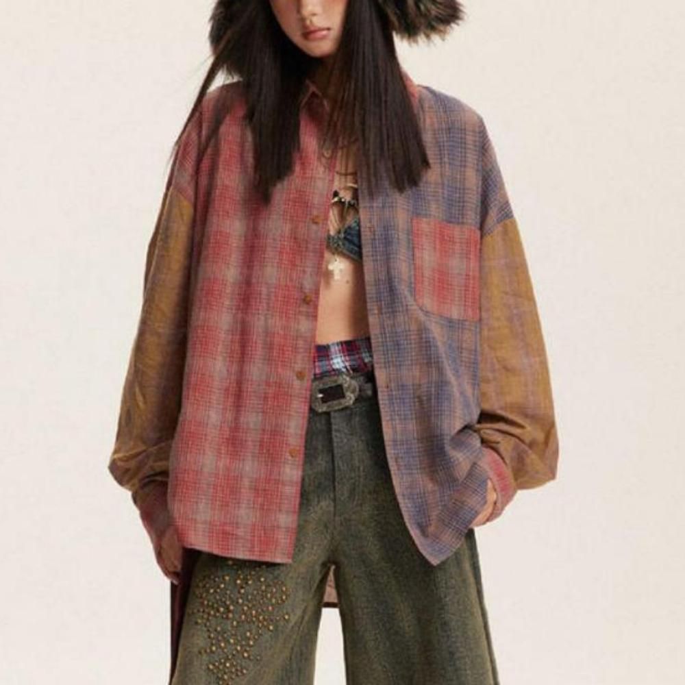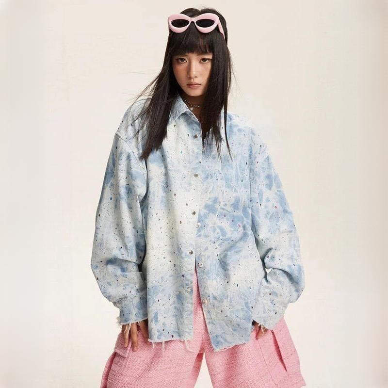 Skeleton Patchwork Oversized Shirt with Turn-down Collar