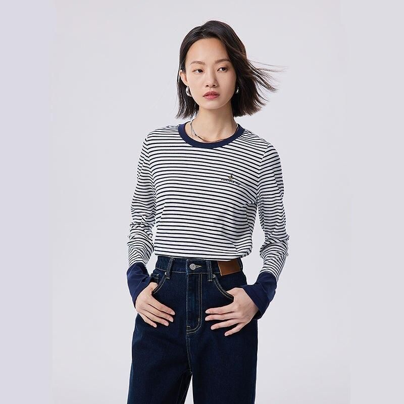 Autumn Bear Print Embroidered Long Sleeve Cotton Tee