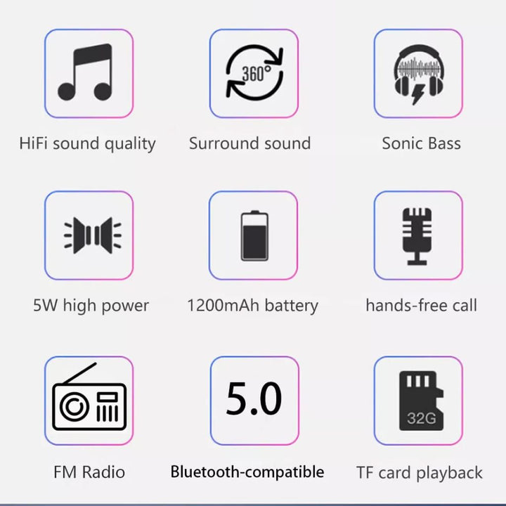 Step into a world where every beat is crystal clear and every note is a celebration. Introducing our Portable Super Bass Bluetooth Speakers, meticulously designed to deliver an immersive audio experience on the go. Whether you're relaxing at home or seeking adventure outdoors, these speakers are your perfect companion.