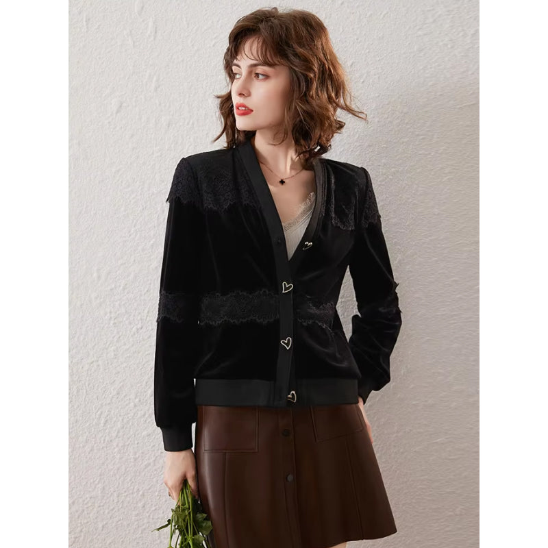 Introducing the elegant V-neck long sleeve lace cardigan, designed to elevate your wardrobe and make a statement. This chic outerwear piece features a stunning love-shaped button that adds a touch of romance and sophistication. Crafted for the modern woman, this jacket is perfect for layering over your favorite tops or dresses, making it a versatile choice for any occasion. Whether you’re heading to the office, attending a dinner date, or enjoying a casual outing, this cardigan will keep you stylish and comfortable.Features That Define Timeless Style