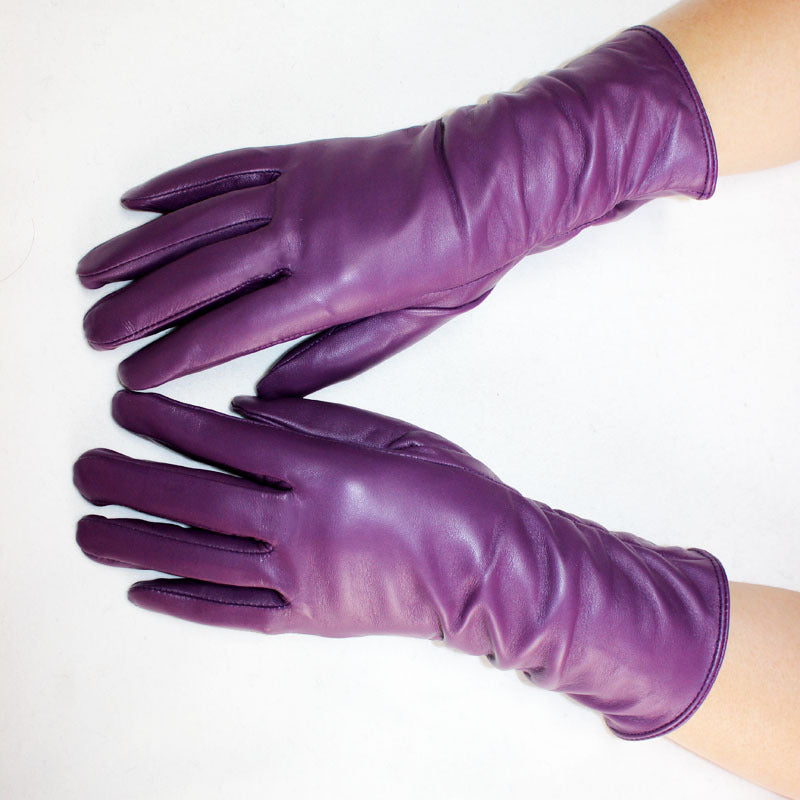 European And American Ladies Color Sheepskin Gloves Fashion Autumn And Winter Warm With Velvet