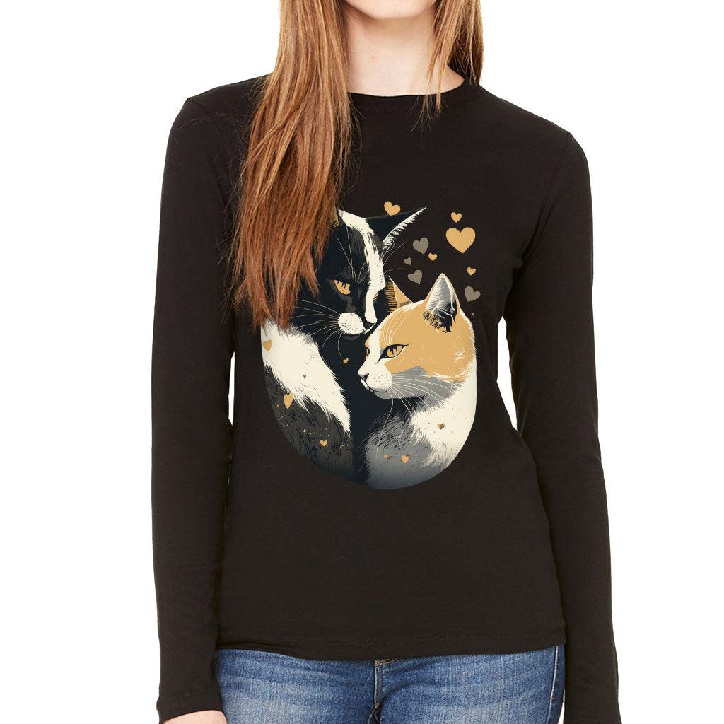 Cat Love Women's Long Sleeve T-Shirt - Couple Style Long Sleeve Tee - Printed T-Shirt