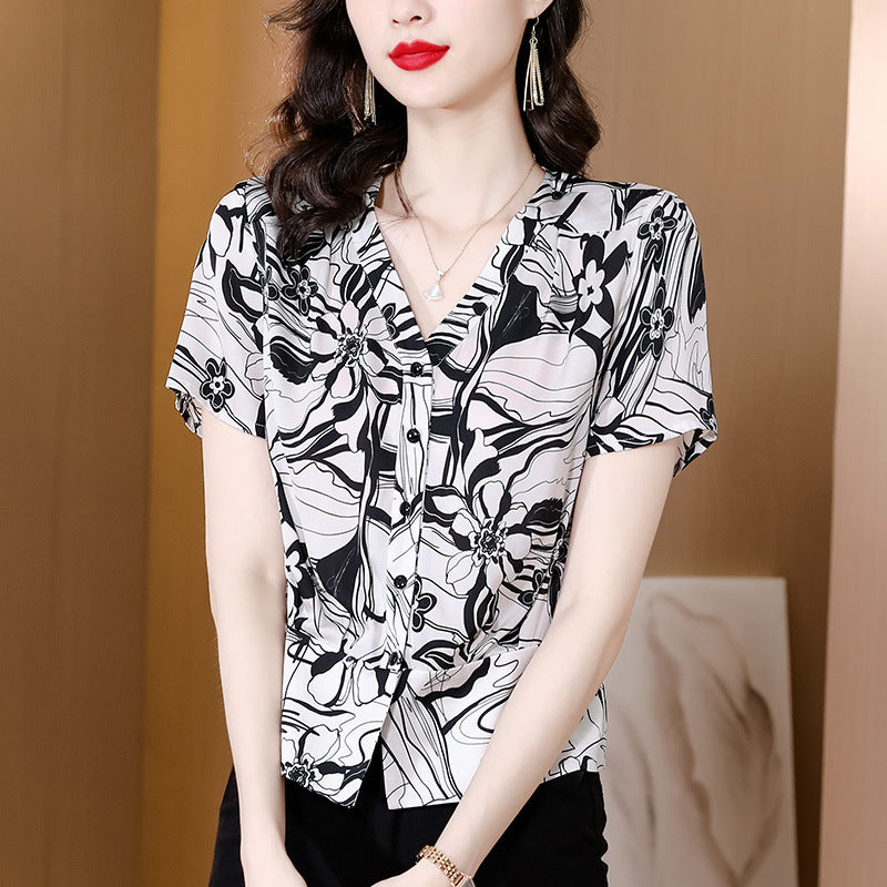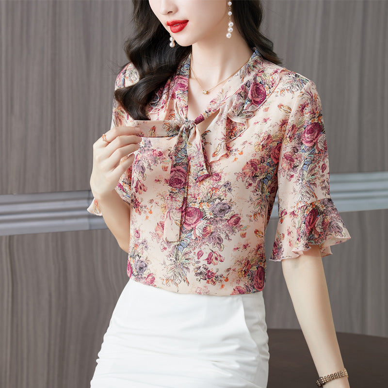 Fragmented Chiffon Shirt Top For Women's Fashionable And Westernized V-neck