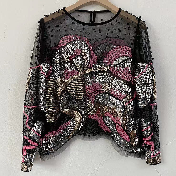 Light Luxury Beaded French Fashion Versatile Handmade Sequin Top