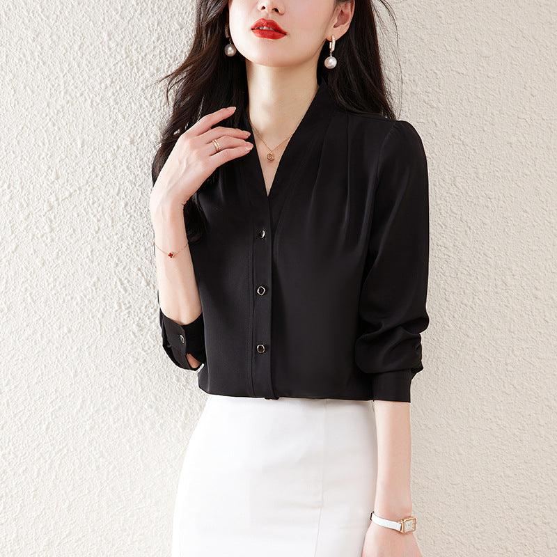 Mulberry Silk Women's New Long Sleeve V-Neck Shirt Top