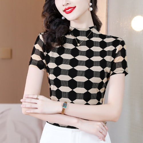 Casual Lace Short Sleeve Positioning Printed T-shirt