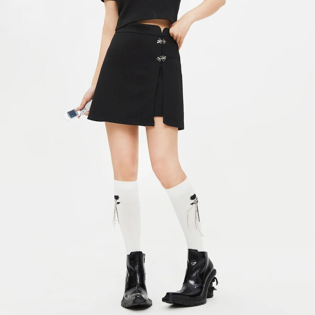Short A-Line Skirt with Chinese Style Buttons