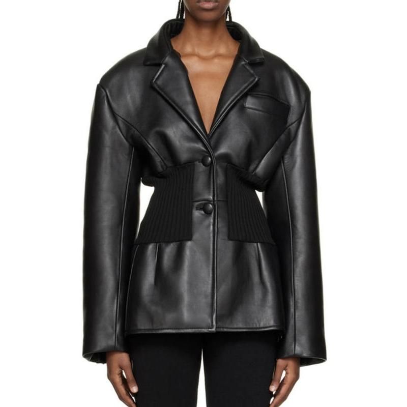 Chic Irregular Women's Blazer with PU Leather Splicing