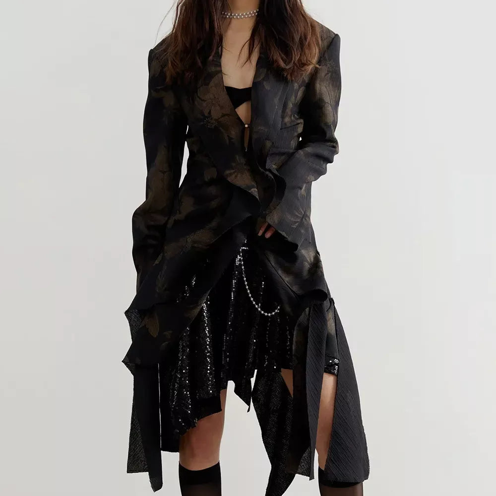 Elegant Asymmetrical Ruffle Suit Jacket for Women
