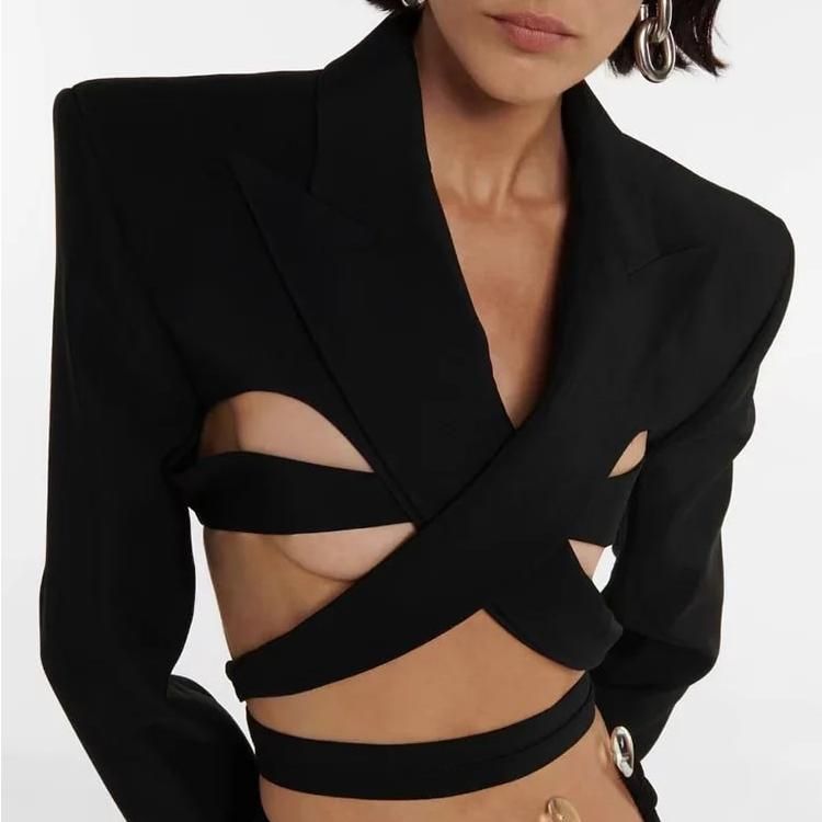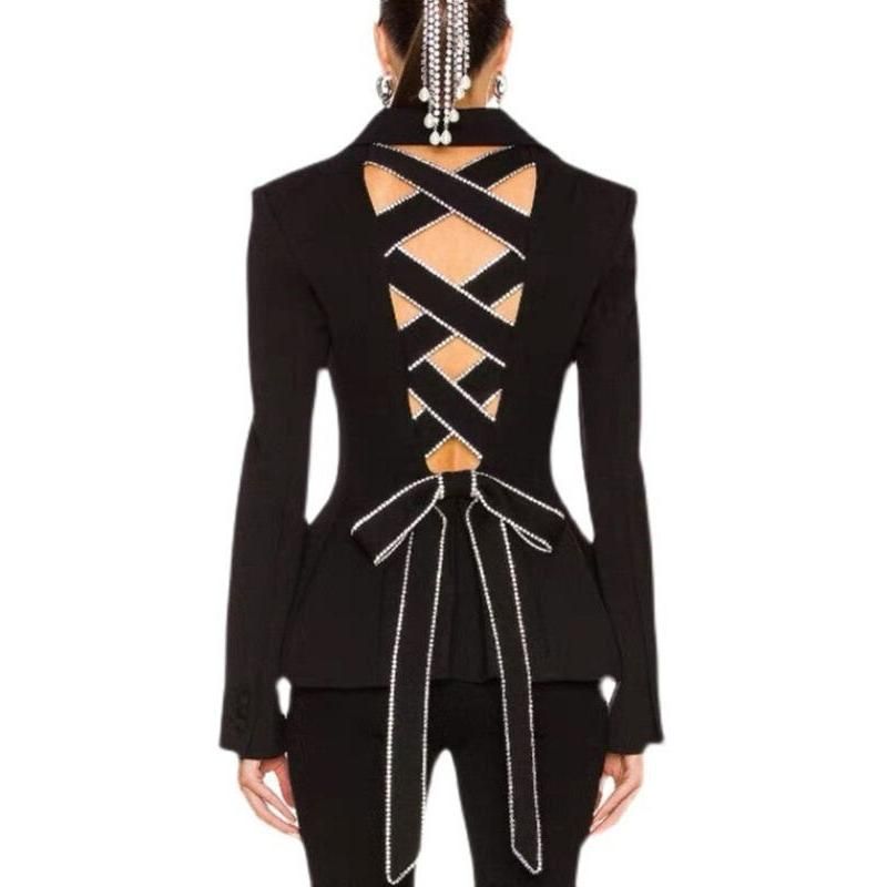 Diamond Hollow Out Bow Tie Women's Blazer