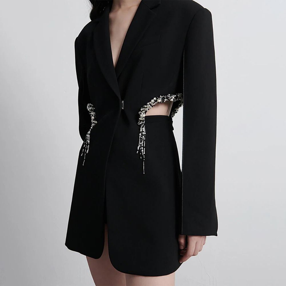 Elegant Hollow Out Crystal-Embellished Women's Blazer