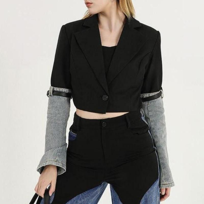 Chic Denim Patchwork Blazer