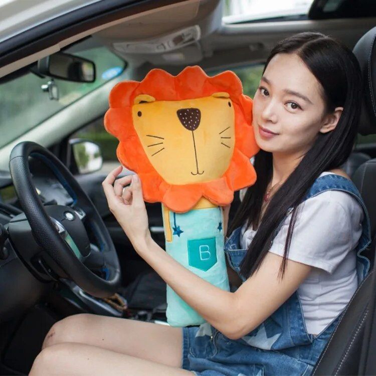 Adjustable Cute Animal Car Seat Strap Cover & Pillow for Kids