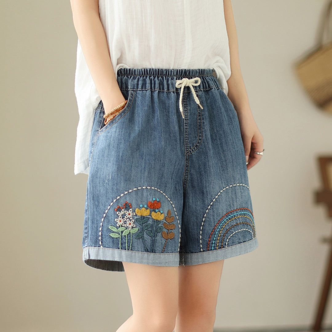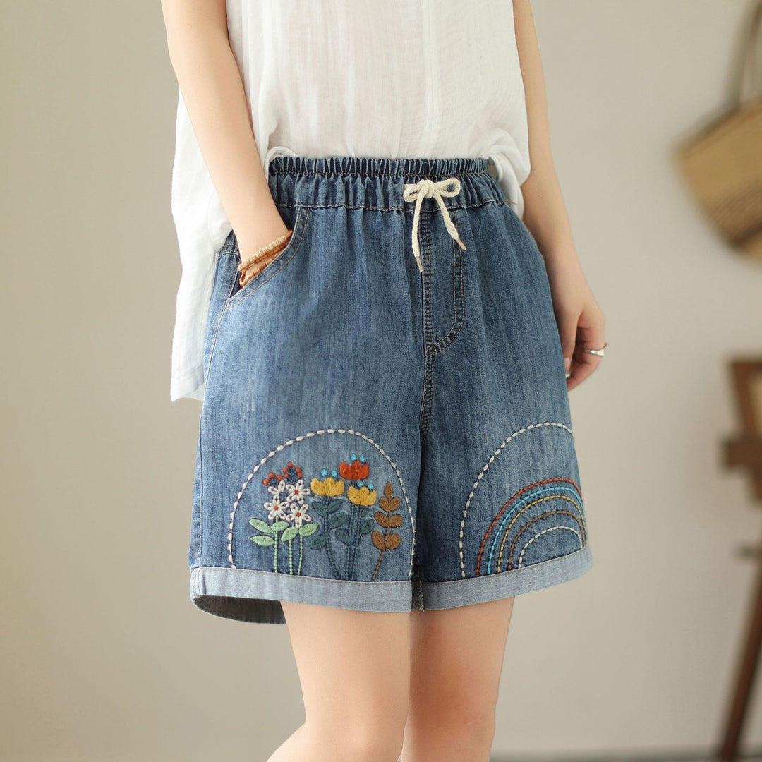 Elevate your summer wardrobe with our Floral Embroidered Denim Harem Shorts. Designed for the fashion-forward woman who craves comfort without compromising on style, these shorts are a must-have addition to your collection. Crafted from high-quality denim, they offer both durability and breathability, ensuring you stay cool and comfortable all day long.Product Features:
