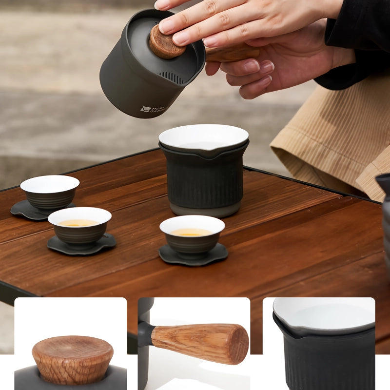 Elevate your outdoor adventures with our Portable Outdoor Camping Tea Set. Whether you're camping in the mountains, enjoying a picnic in the park, or simply taking a break during a hike, this 4-piece tea set is the ultimate companion for tea lovers on the go. Designed for those who appreciate the finer things in life, this tea set allows you to brew and enjoy a perfect cup of tea no matter where you are.Compact, Lightweight, and Durable