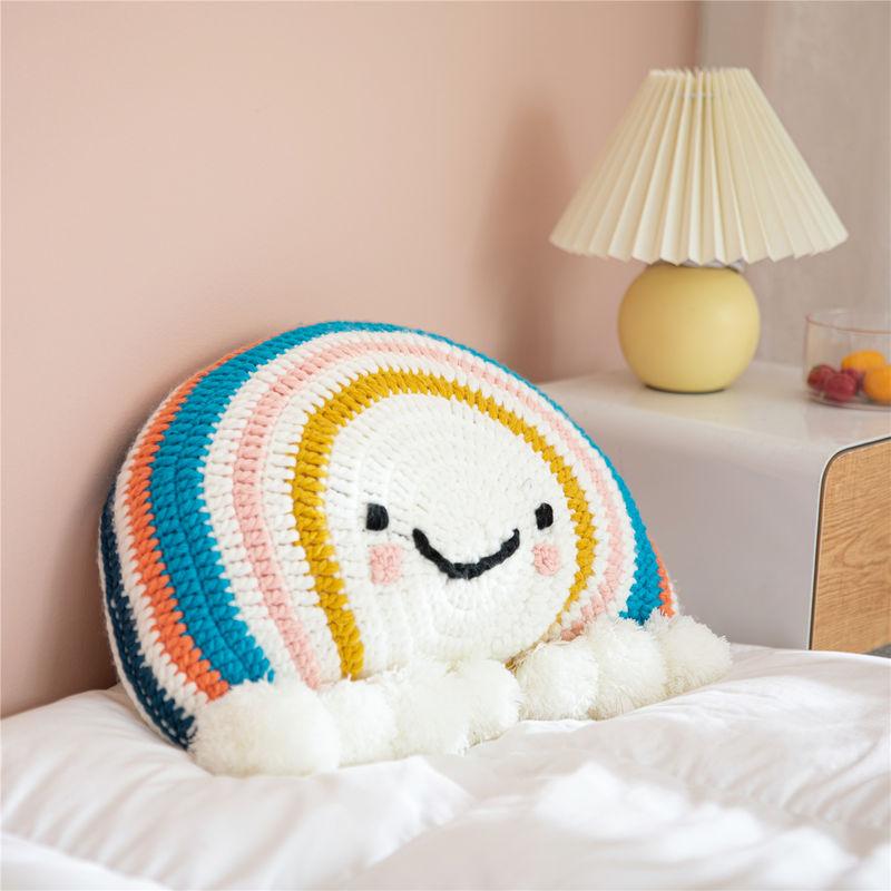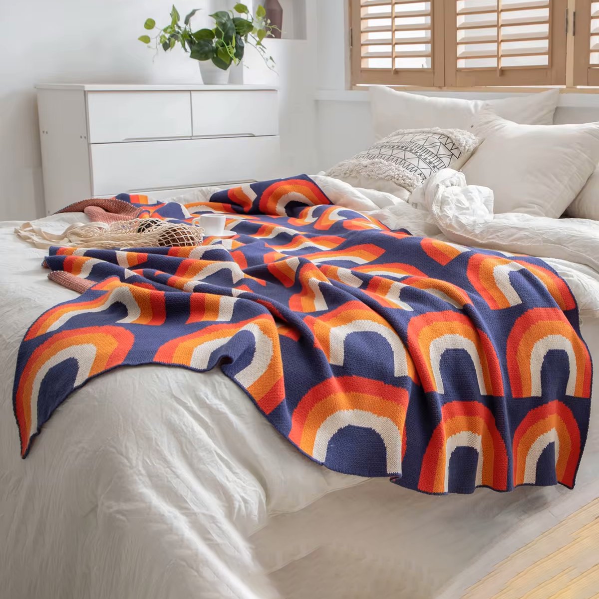 Colorful Rainbow Cotton Knitted Throw Blanket