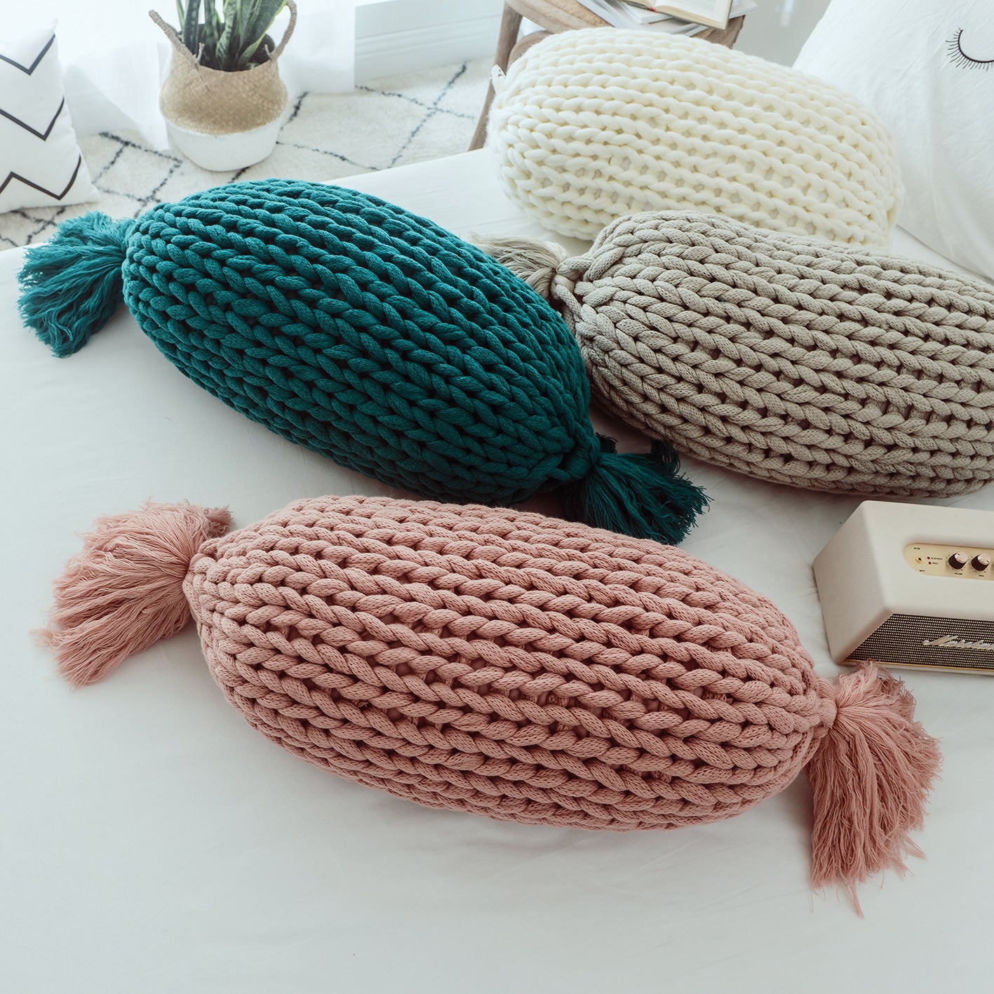 Bird's Nest Chunky Yarn Hand-Knotted Throw Pillow