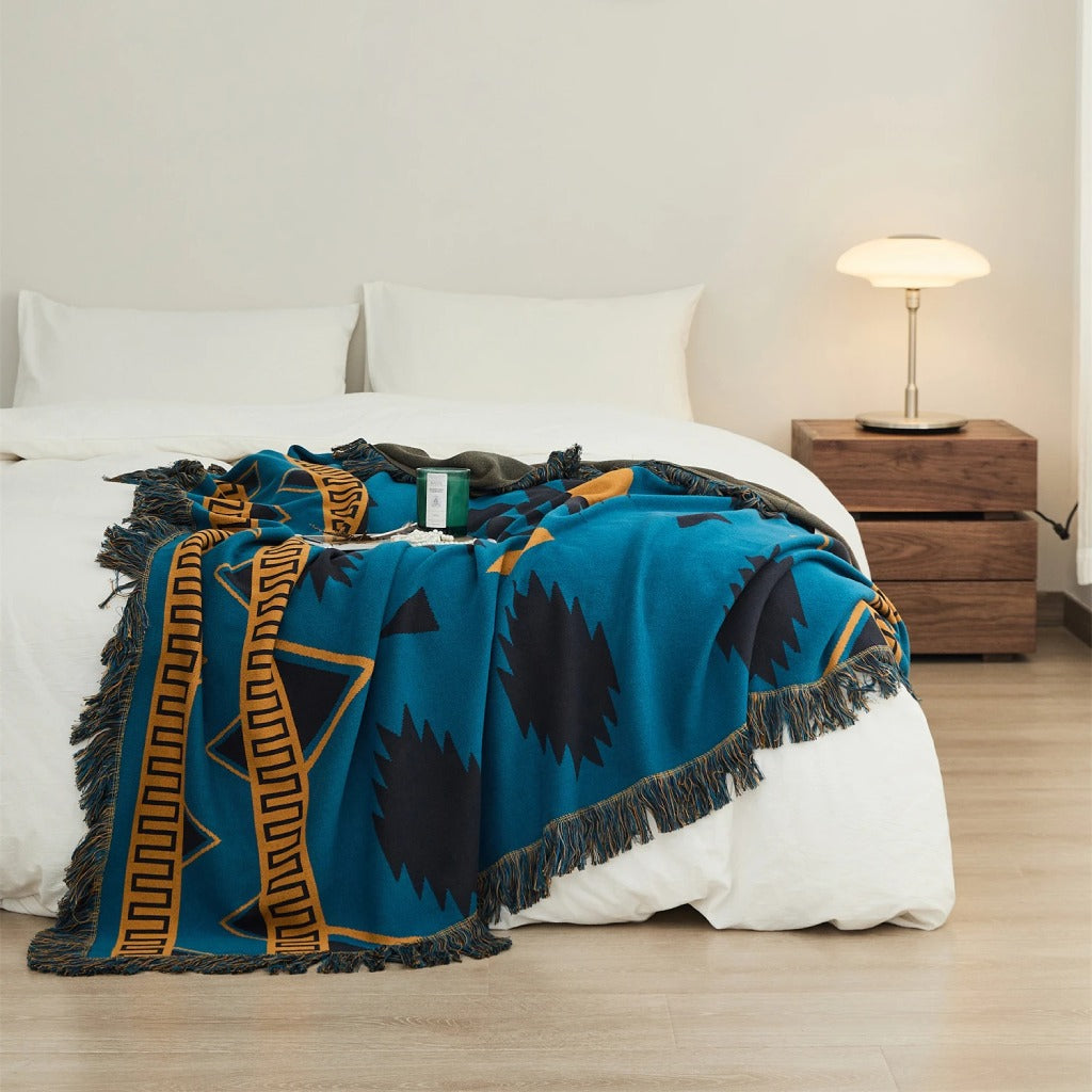 Bohemian Geometric Pattern Blanket with Luxurious Fringes