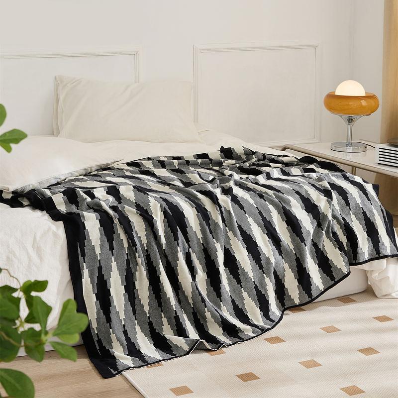 Elegant Geometric Pattern Cotton Blanket with Stripe Edge