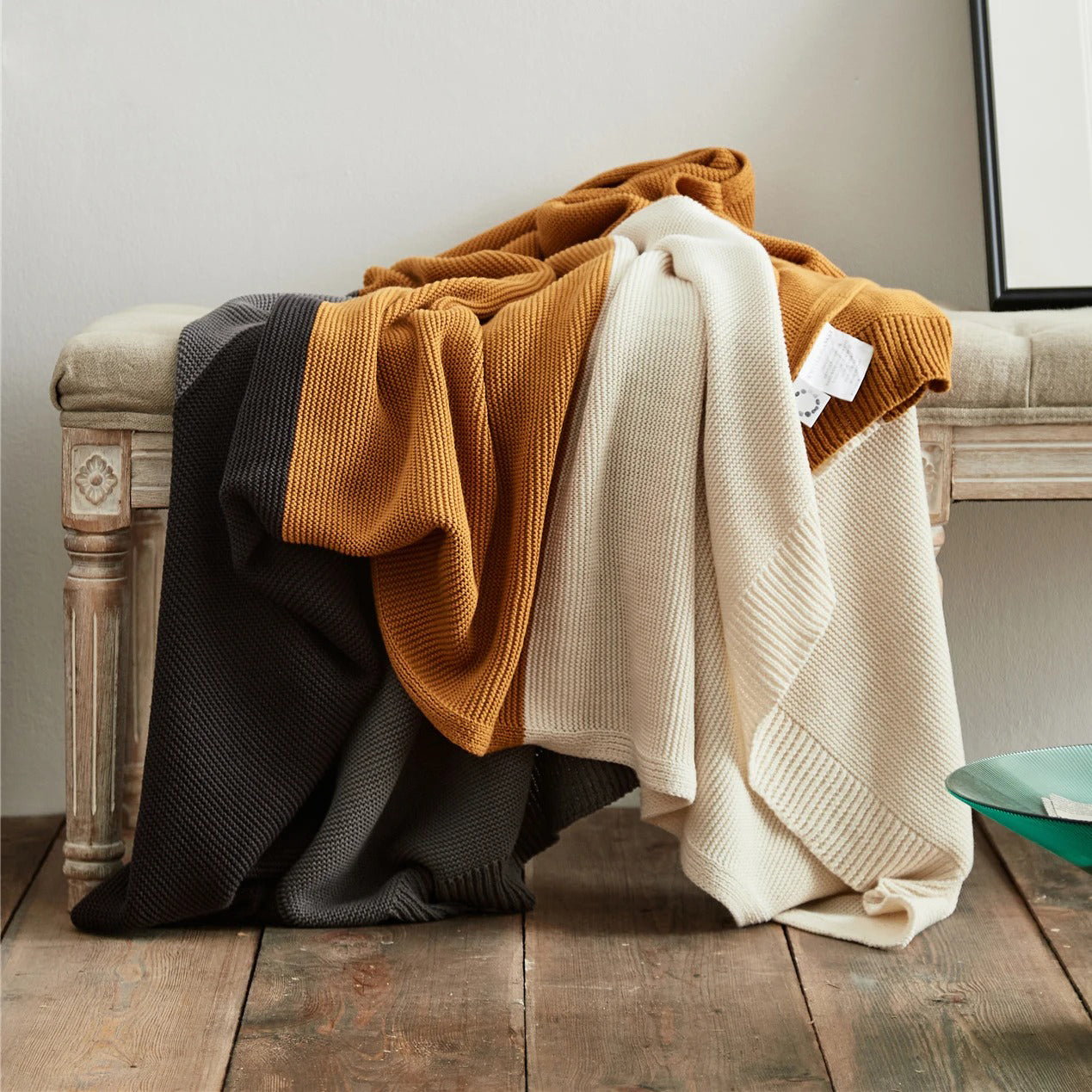 Elegant Cotton Knitted Plaid Blanket - Cozy Home Decoration