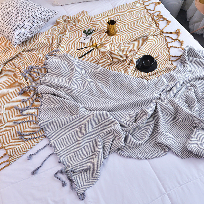 Bohemian Home Decor Cotton Throw Blanket with Tassels