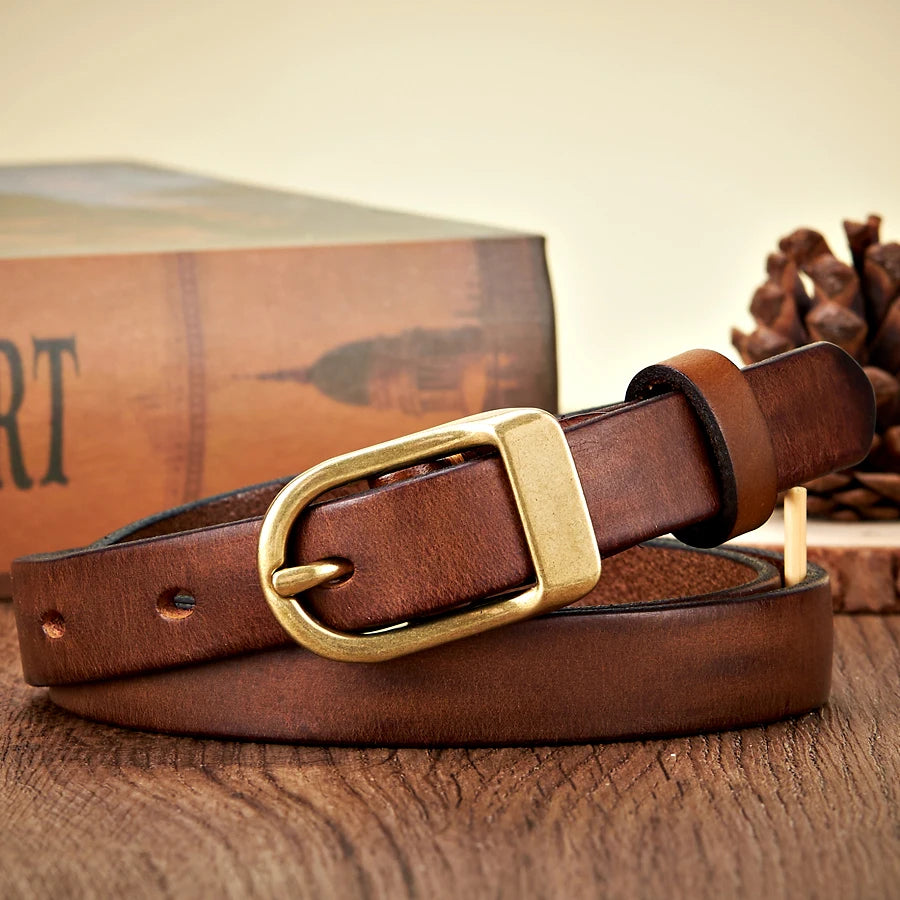 Women's Genuine Leather Slim Waist Belt - Casual & Stylish Accessory for Jeans and Dresses