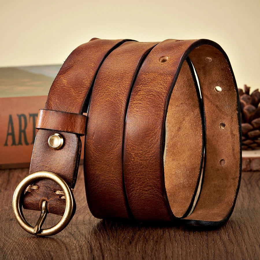 Women's Genuine Cow Leather Belt with Retro Metal Oval Buckle