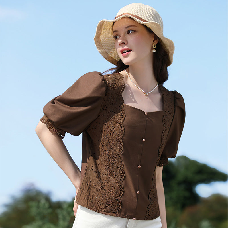Elegant Floral Embroidered Blouse with Puff Sleeves