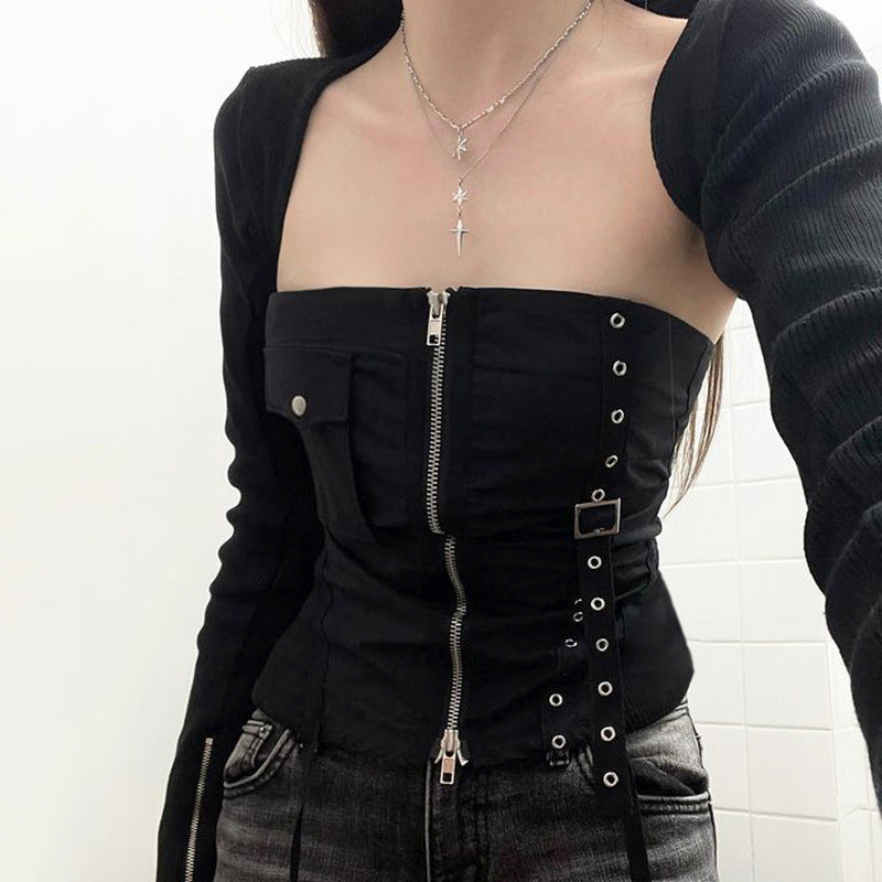 Women's Fashionable Simple Cargo Pocket Zipper Slim Fit Waist Tube Top