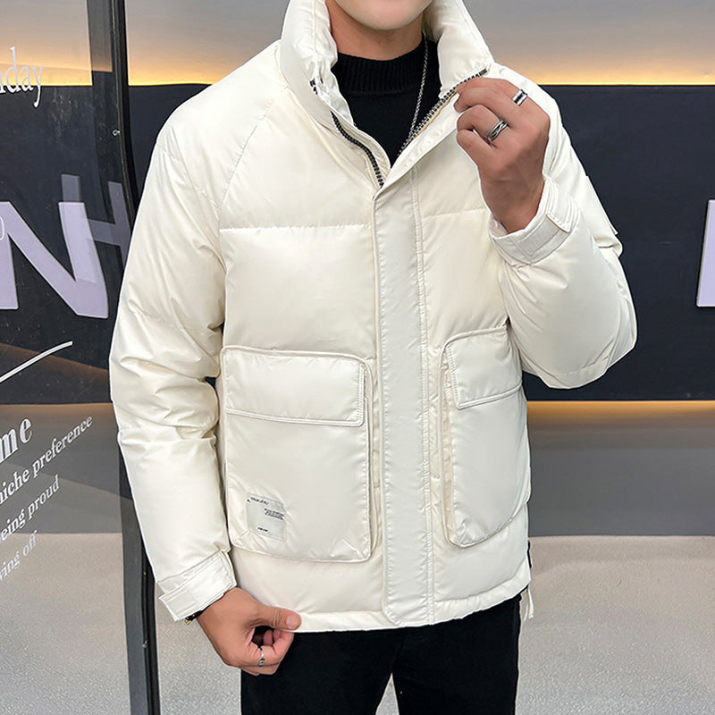 Thick Down Jacket Men's Short Detachable Hat Warm
