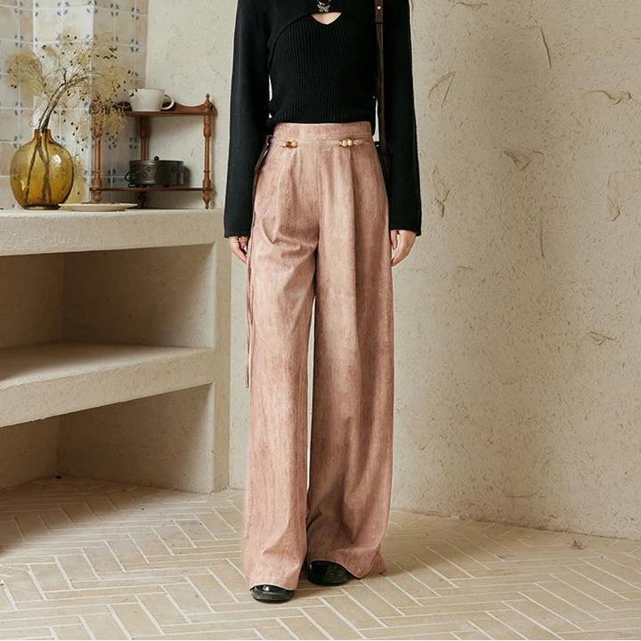 Step into chic, effortless style with these High-Waisted Loose Wide Leg Pants for Women, designed for autumn 2024. Perfect for an office lady or anyone seeking a blend of sophistication and comfort, these pants are crafted to offer a flattering silhouette while keeping you cozy all day long. With their rich pink dyeing and loose, flowing fit, these pants add a soft yet bold touch to any outfit, making them a perfect choice for the autumn and winter months. The high waist with a decorative sash and round bead threading rope gives the pants a unique charm, ensuring that you stand out in any setting.Why These Pants Are a Must-Have