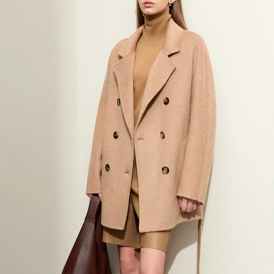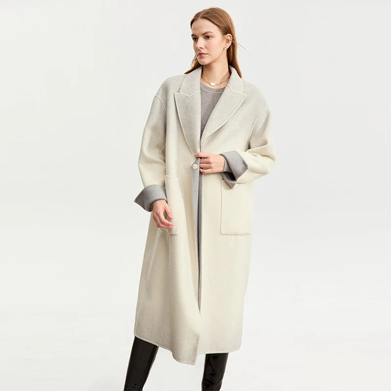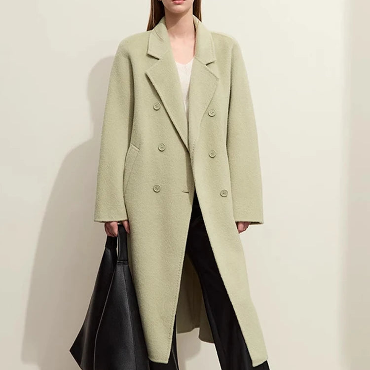 Elegant Long Woolen Coat for Women - Classic Double-Breasted Design