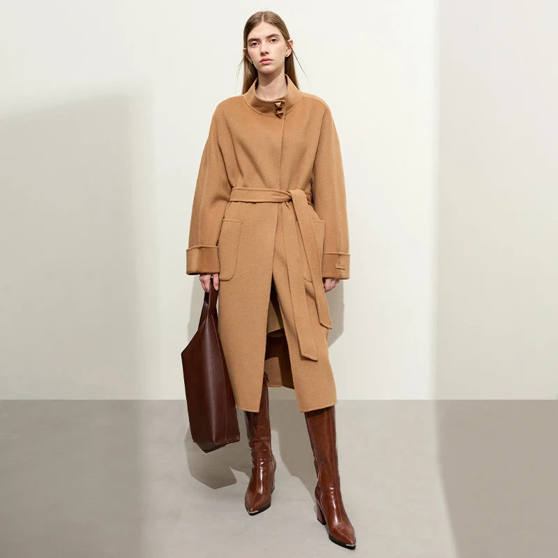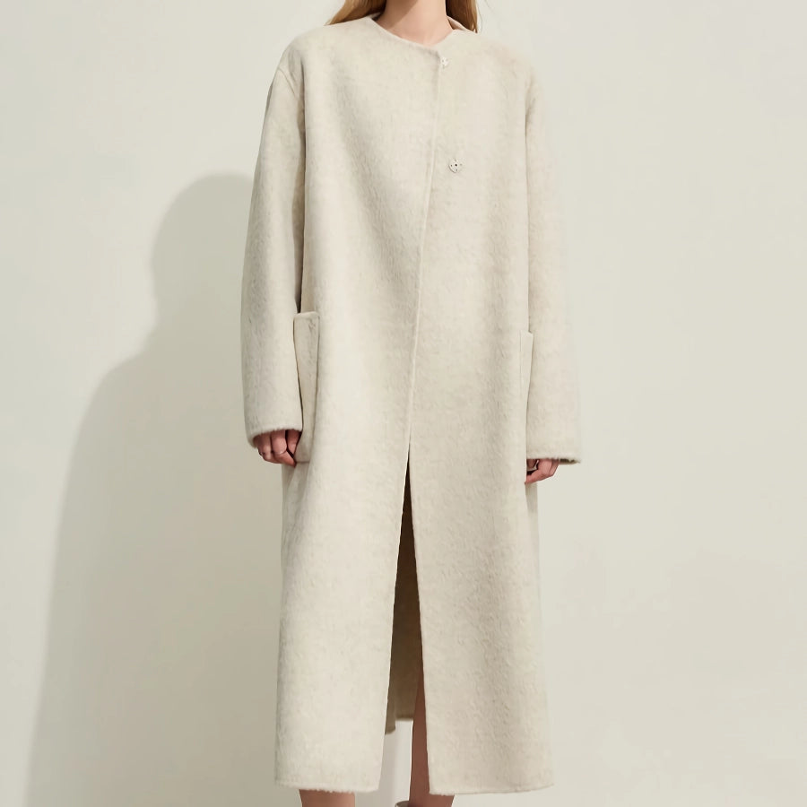 Minimalist Woolen Long Coat for Women - Warm Stand Collar Double-sided Jacket
