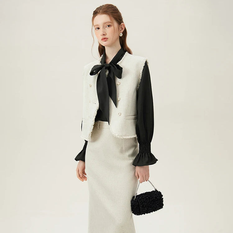 Women's Autumn Beige Wool Blend V-Neck Sweater Vest