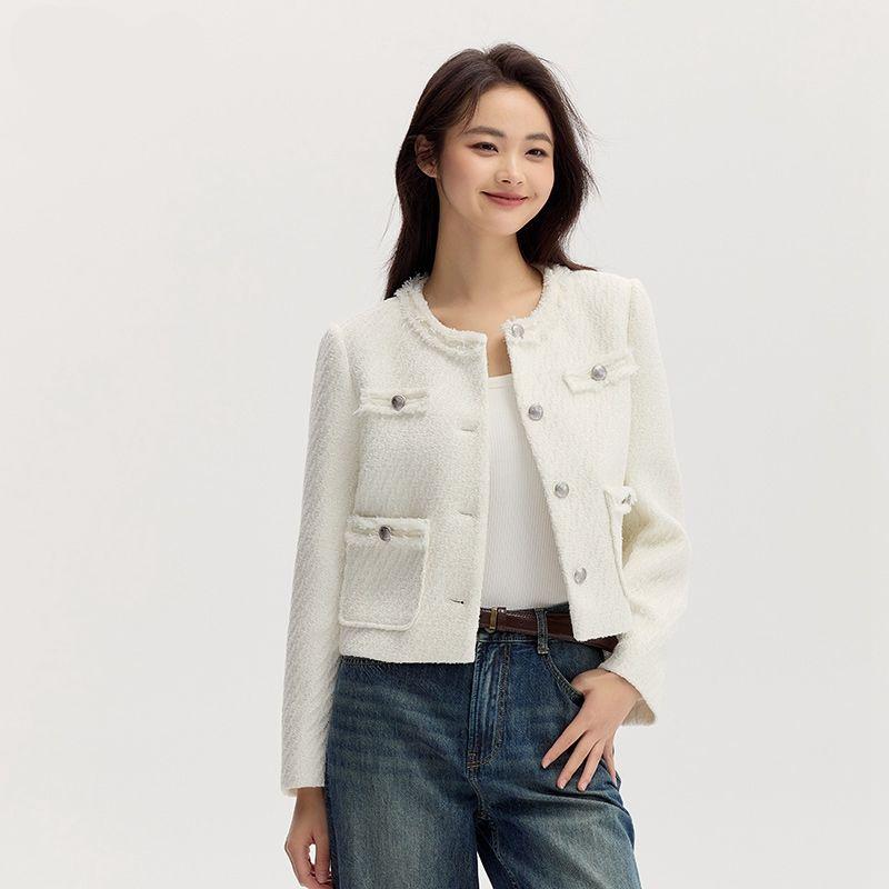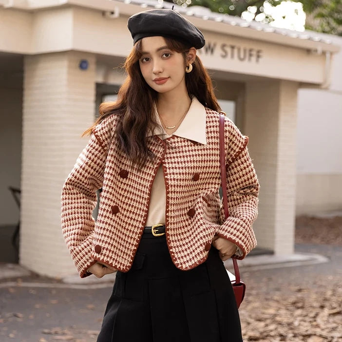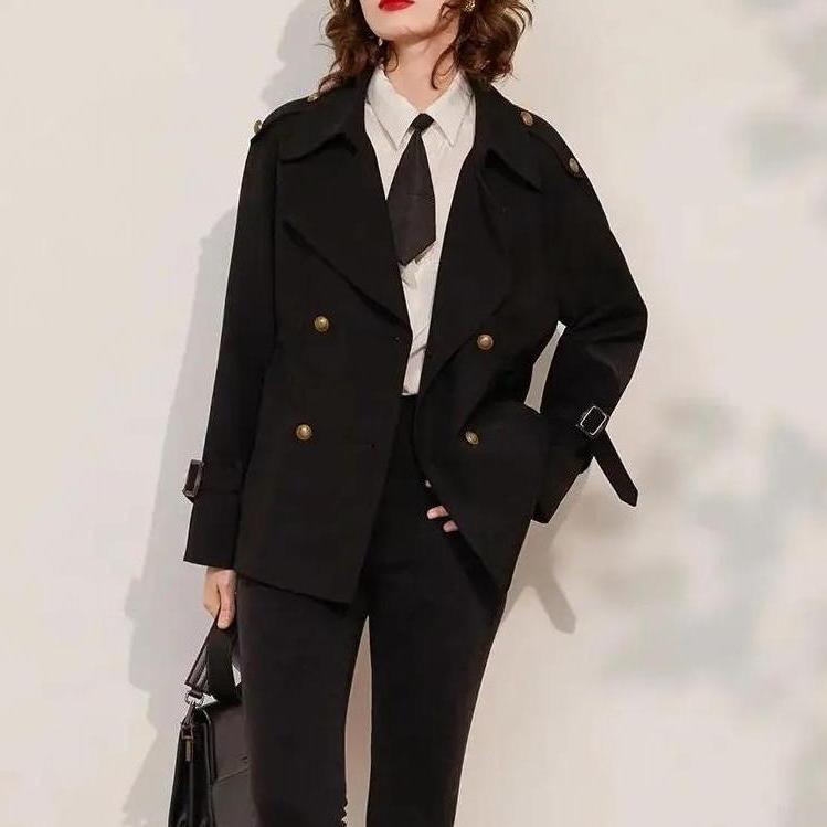 Elegant Autumn Double-Breasted Blazer with Notched Collar