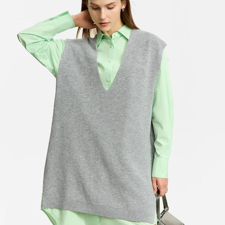 Autumn Long Loose V-Neck Sleeveless Sweater Vest for Women