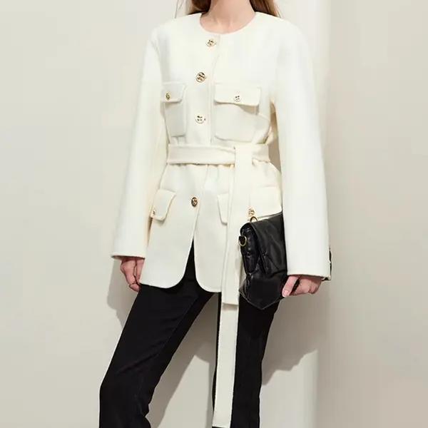 Elegant Minimalist Woolen Coat for Women - High Street Style
