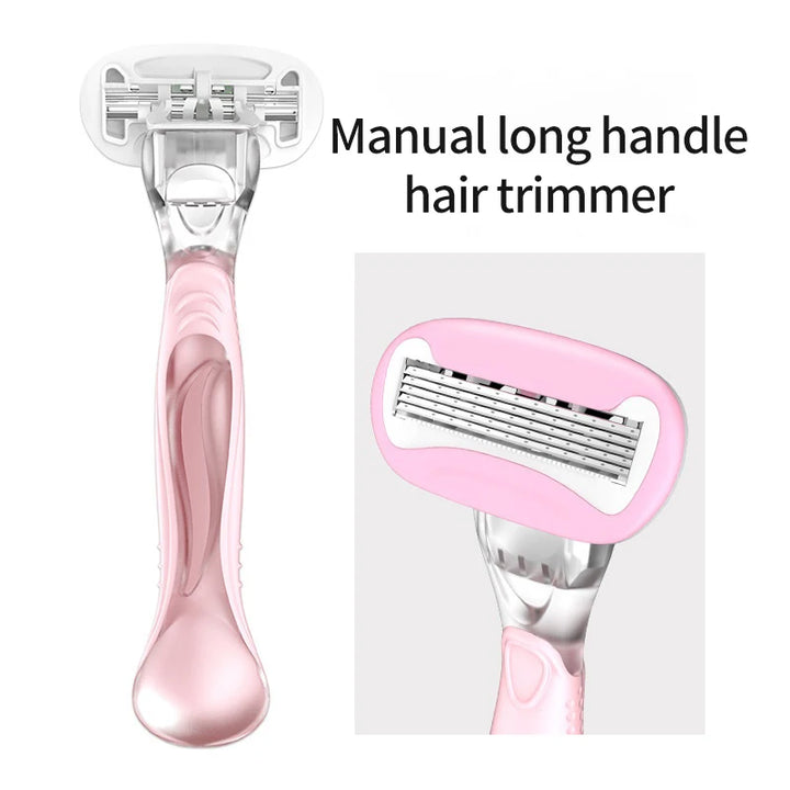 Discover a new level of smoothness with this 5-layer safety razor, designed specifically for women who value comfort and precision in their shaving routine. Featuring Swedish stainless steel blades, this manual razor offers a close, gentle shave every time. The rotatable blade head and ergonomically designed rubber handle make it easy to navigate curves, while the built-in lubrication strip infused with vitamin E and aloe vera helps keep your skin feeling soft and protected.Advanced Features for a Superior Shave