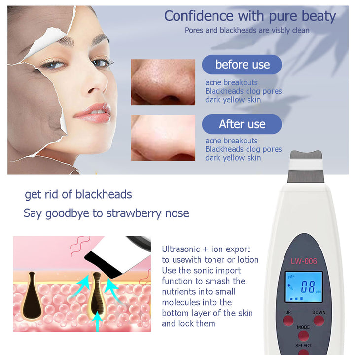 Experience the ultimate in skincare with our Ultrasonic Skin Scrubber Deep Face Cleaning Machine. Designed to deeply cleanse, tone, and lift your skin, this innovative device uses advanced ultrasonic technology to remove impurities, reduce fine lines, and enhance your natural glow. Perfect for all skin types, this machine provides a professional-grade facial treatment in the comfort of your home, leaving your skin looking refreshed, radiant, and youthful.Advanced Features