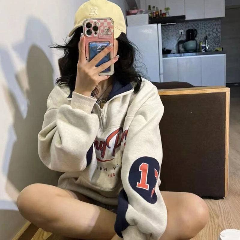 Autumn And Winter Washed And Worn Padded Hooded Sweatshirt