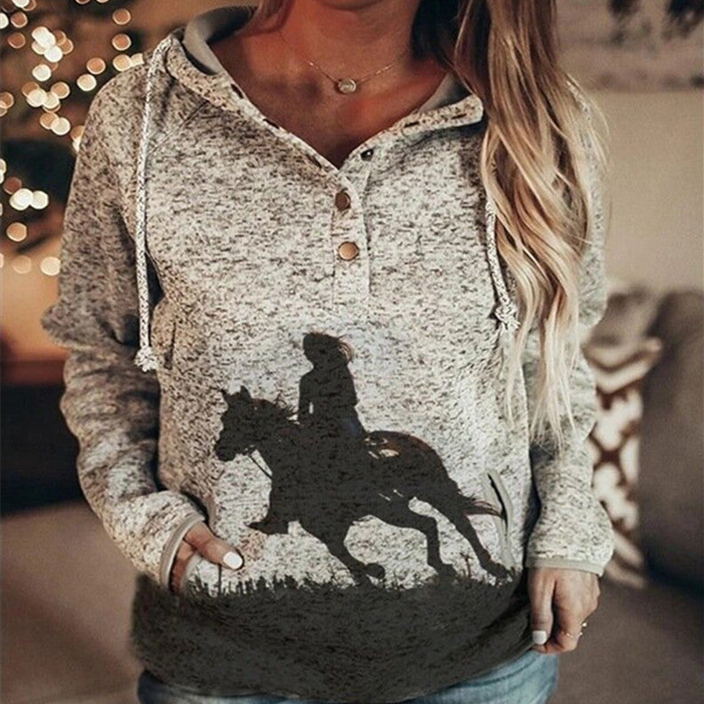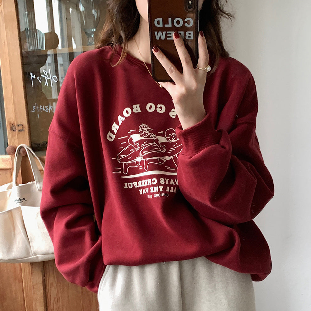 Printed Loose Round Neck Long Sleeve Sweaters Women's Clothing