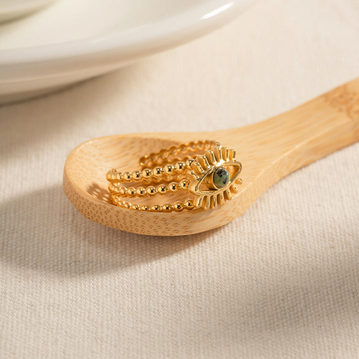 Make a statement with the striking Devil's Eye Stainless Steel Natural Stone Adjustable Ring. This bold and unique ring combines modern elegance with a touch of mysticism, perfect for the woman who isn’t afraid to stand out. Whether you’re dressing up for a special occasion or looking to add a hint of edge to your everyday look, this one-of-a-kind accessory offers both style and substance. Crafted from high-quality stainless steel and adorned with natural African pine stones, this three-layer open ring is designed to capture attention and spark conversation.