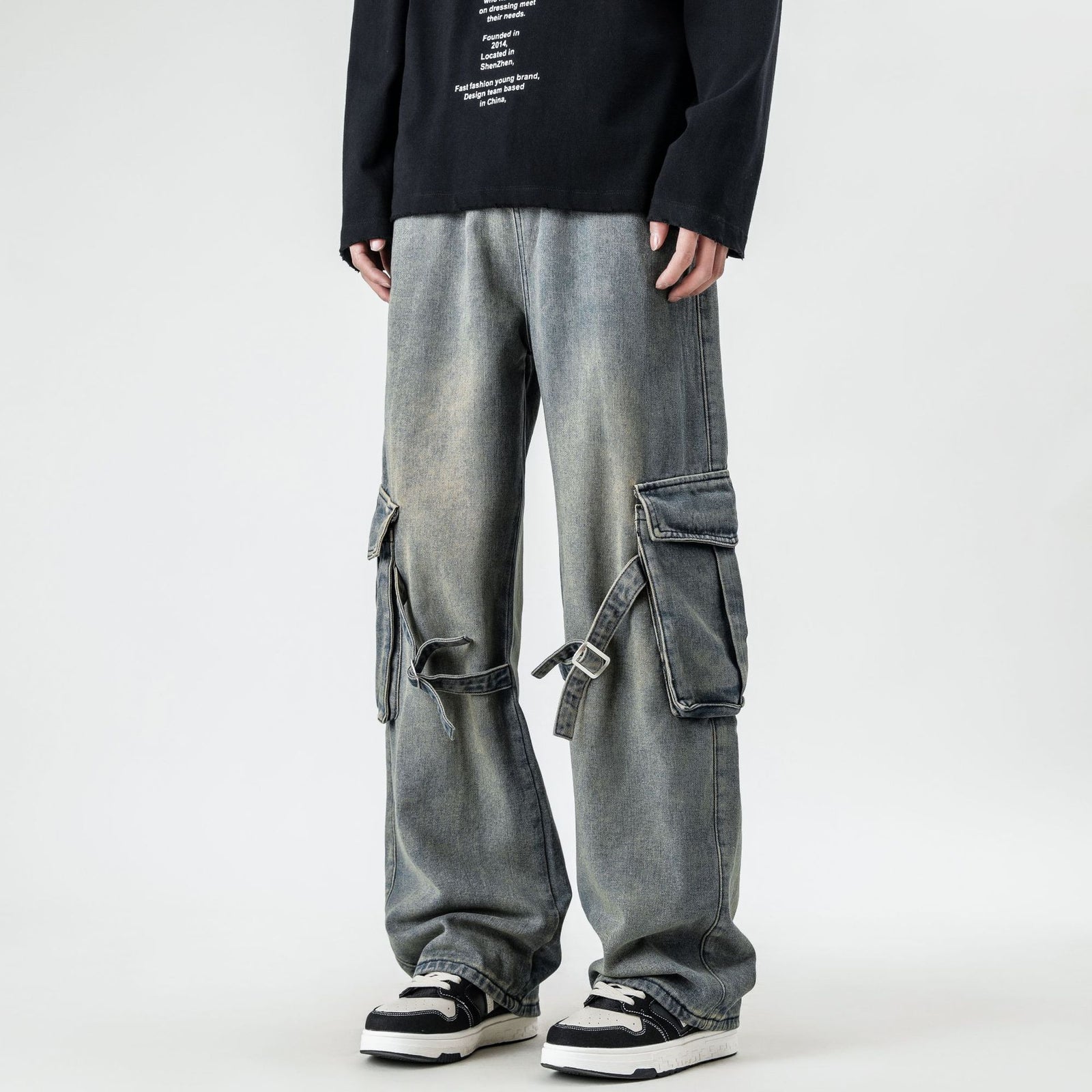 Fashionable And Simple Men's Multi-Pocket Tooling Jeans