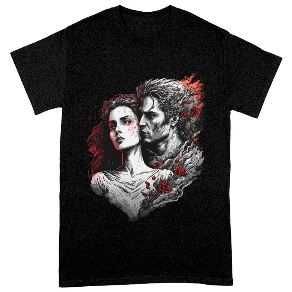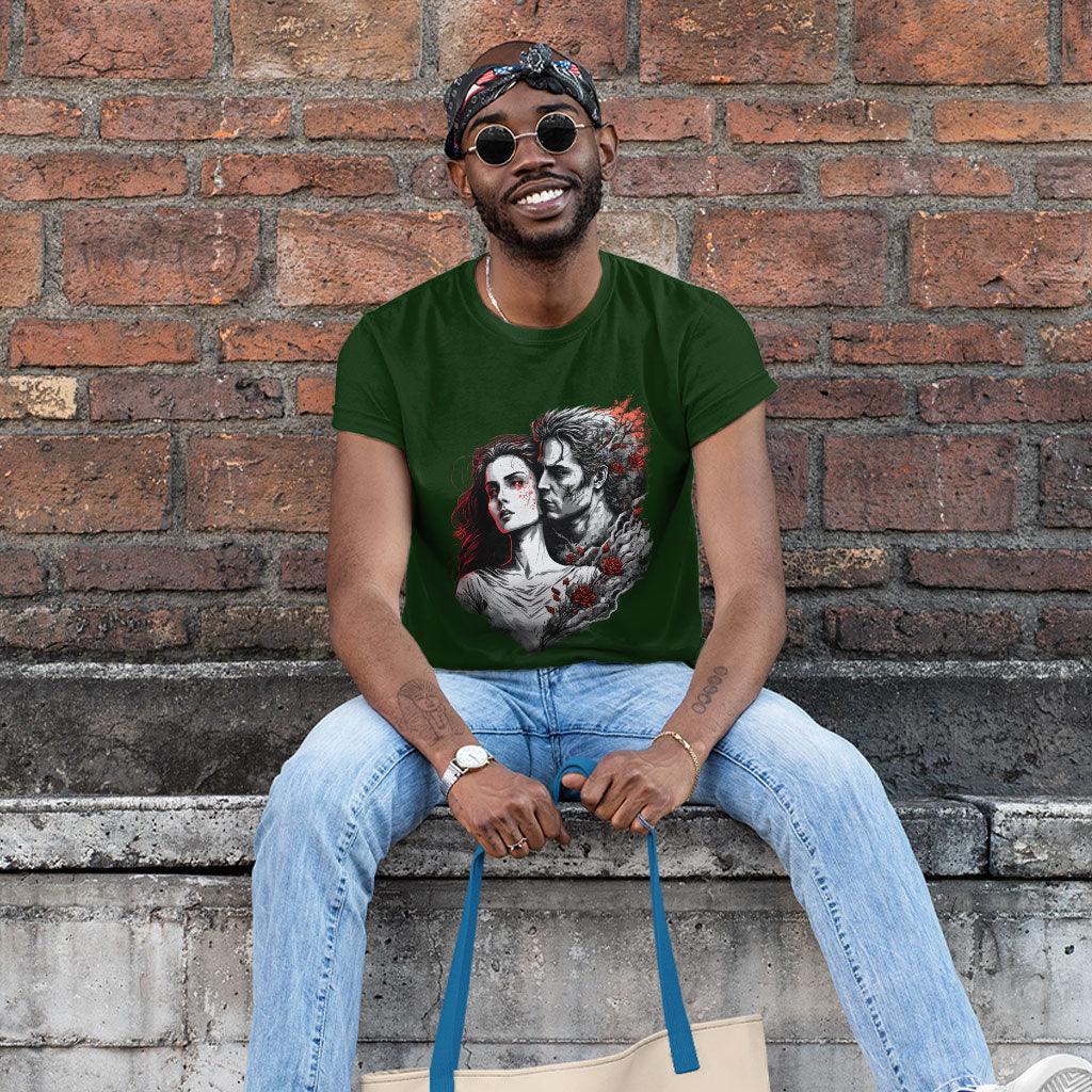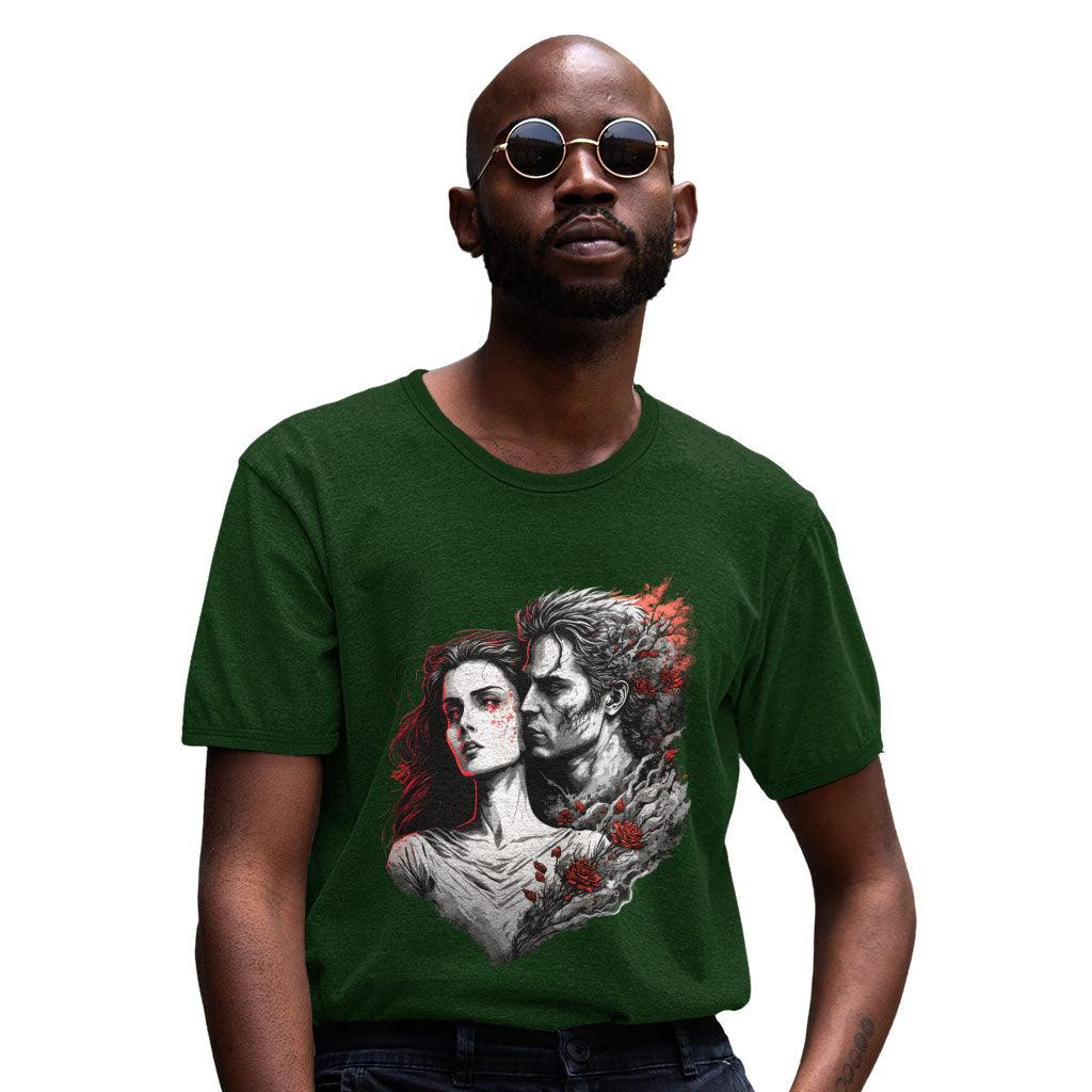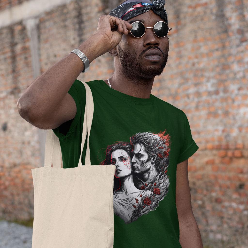Rose Print Heavy Cotton T-Shirt - Graphic Tee Shirt - Love Print T-Shirt