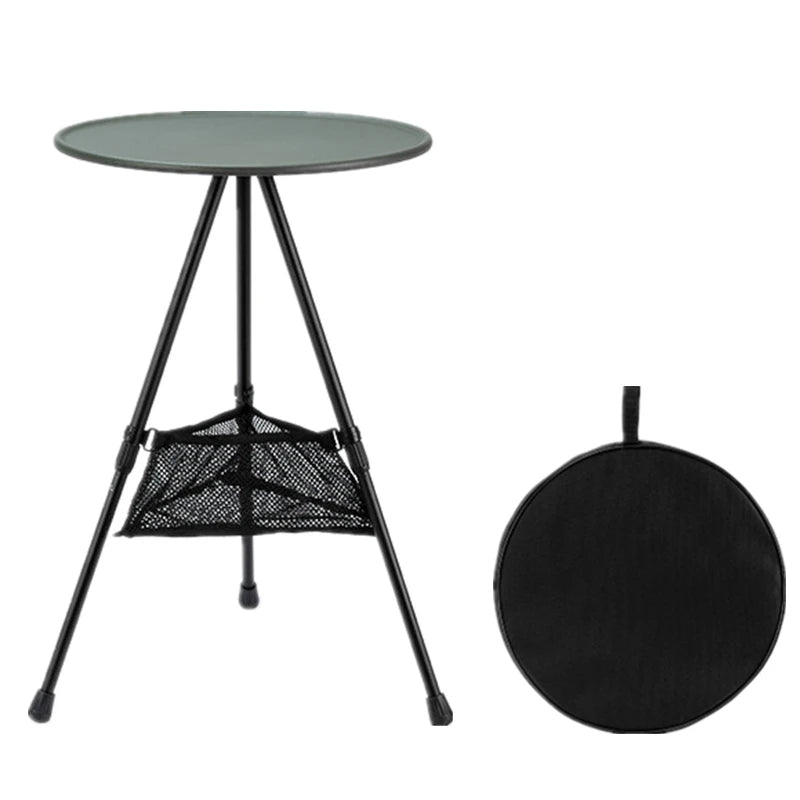 Adjustable Ultralight Portable Camping Round Table with Light Stand