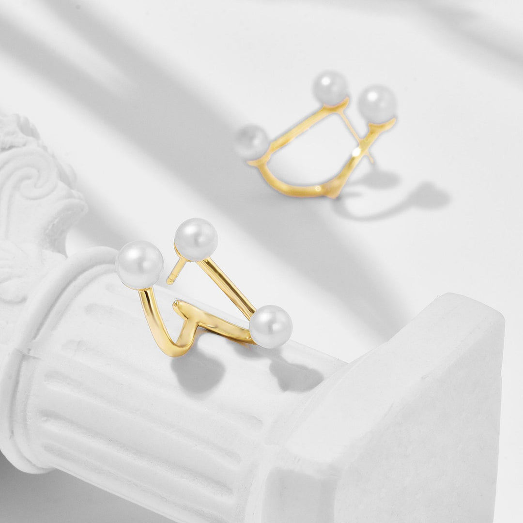 S925 Silver Gilded Earrings Freshwater Pearl Stereoscopic Personality