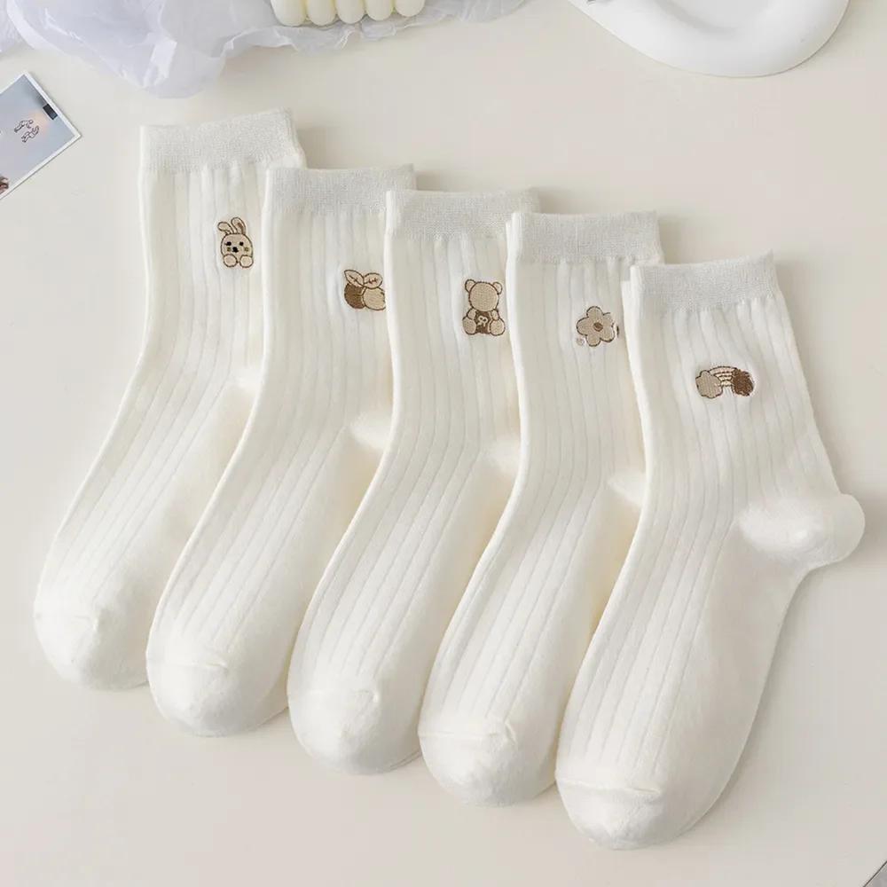 5 Pairs Cute Teddy Bear Ankle Socks - Comfy Short Crew Socks