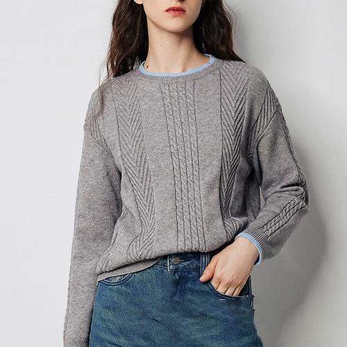 Women's Contrast Color Twisted Pattern Pullover Sweater